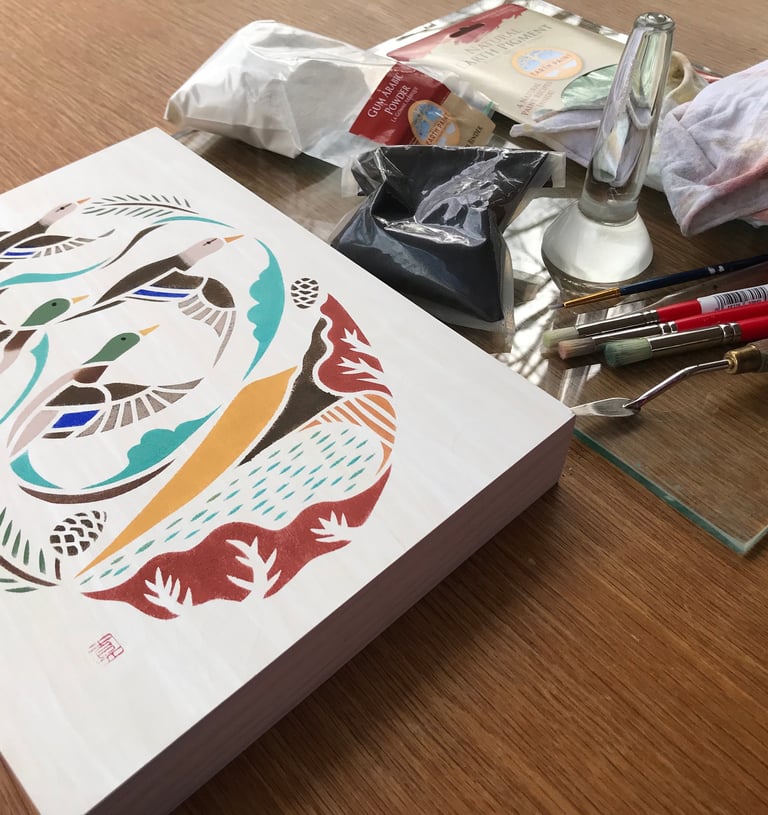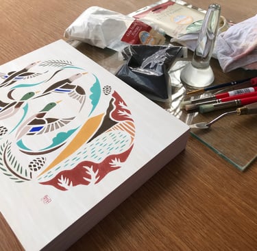 I am a self-taught paper cutout and stencil artist from Japan based in Columbia County, NY. Inspired by traditional Japanese stencil textile designs and the Mingei folk art movement, I have been making art since 1999 for clients such as the National Audubon Society, Atlantic Magazine, and the Nature Conservancy.
