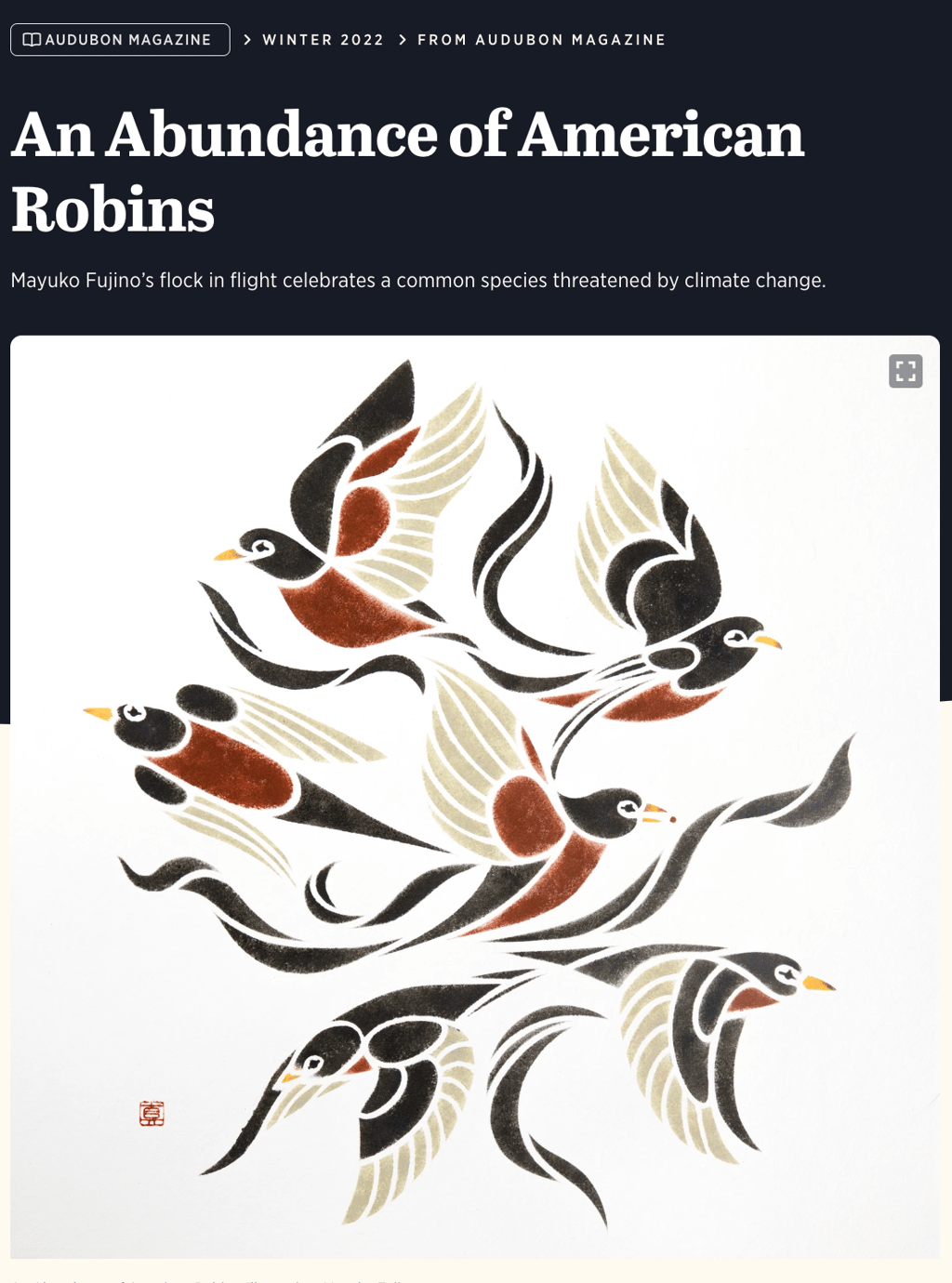 I was featured in The Aviary, an Audubon magazine series published by the National Audubon Society. The series showcases artists who explore the intersection of birds and art as a catalyst for shifting perspectives and perceptions.
